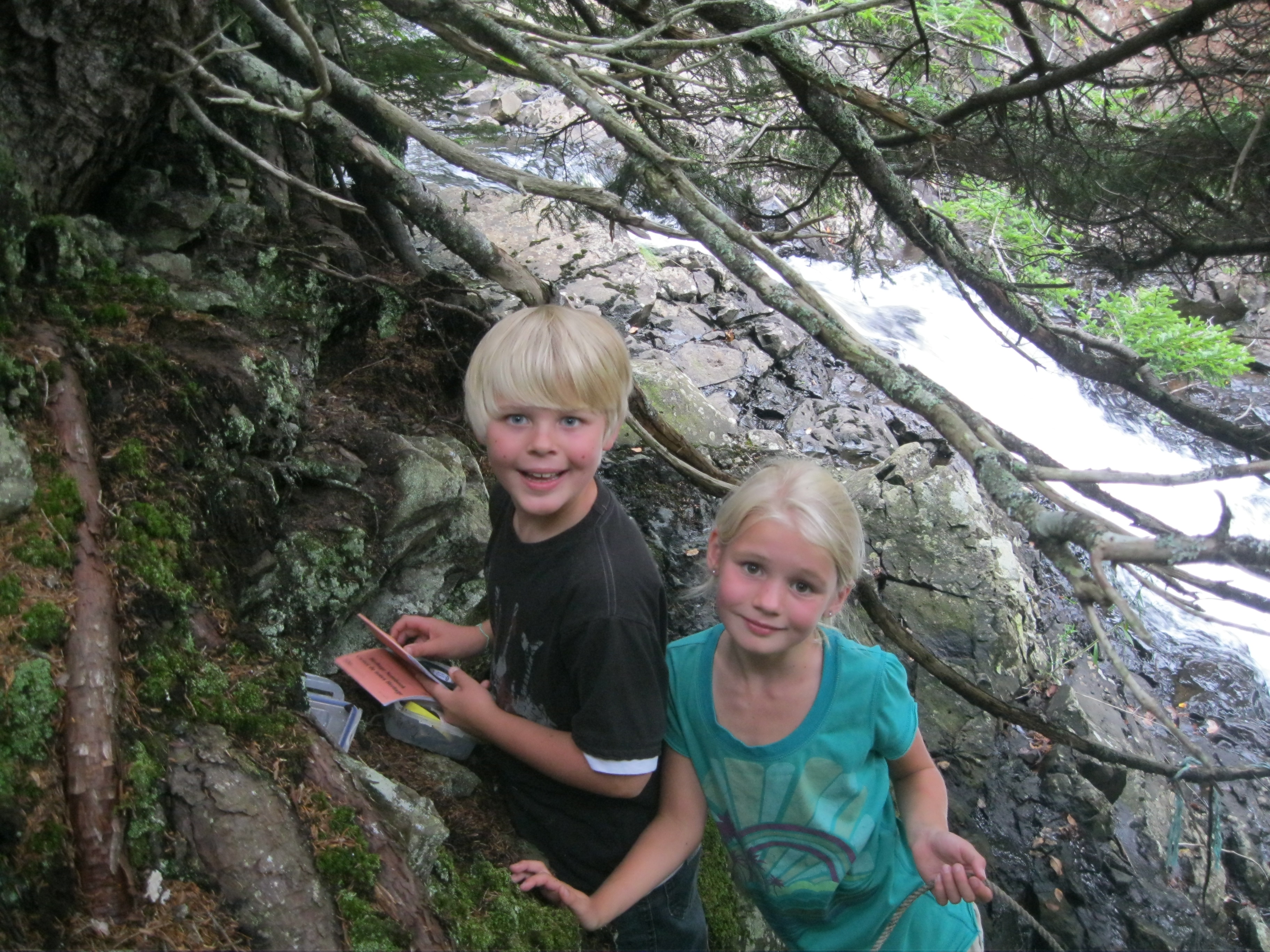 My kids have been hiking literally their entire lives.  They have all started at just a few days old in a front carrier, graduated to a backpack around six months, and as soon as they got too heavy were kicked out to keep up on their own two feet.  Those on their feet would start a hike running and dancing, hiding behind trees, exploring puddles, and fighting over who would be the leader.  But soon the hike would become a repeat of the car ride to the trail head; fighting, how-much-longers, and, my personal favorite, the I’m hungry/thirsty whine every ten steps (really, this isn’t much of an exaggeration!).  The end result of the hike- a mountain top or body of water- would bolster spirits for awhile, but then came the return hike to the car!  We have collected leaves in bags, sang songs, looked for animals along the trail; anything to entertain.  That day two years ago, though, I felt that I finally had my answer to “trail entertainment.”  And, you know what, I did!