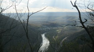 A historical marker at the base of the steps indicates that this area was known as the “Silica Brick Capital of the World” because of the bricks made from the sandstone found in these narrows. Miles of railroad track was used to bring the silica down from the mountainside quarries. In 1936 there was a flood that wiped out the bridge across the river to the town of Mount Union and it’s brick factories. So, as the bridge was being replaced, the workers, needing something to do, built the steps into the mountainside to make their climb up and down the mountain easier. These steps are now a very popular hike. Some of the original miners actually helped in the restoration process of the stairs, relying on their memories to help reposition the rocks into the staircase. You’ve got to wonder what they thought about people hiking for fun what was once their route to start and end a hard day of work.