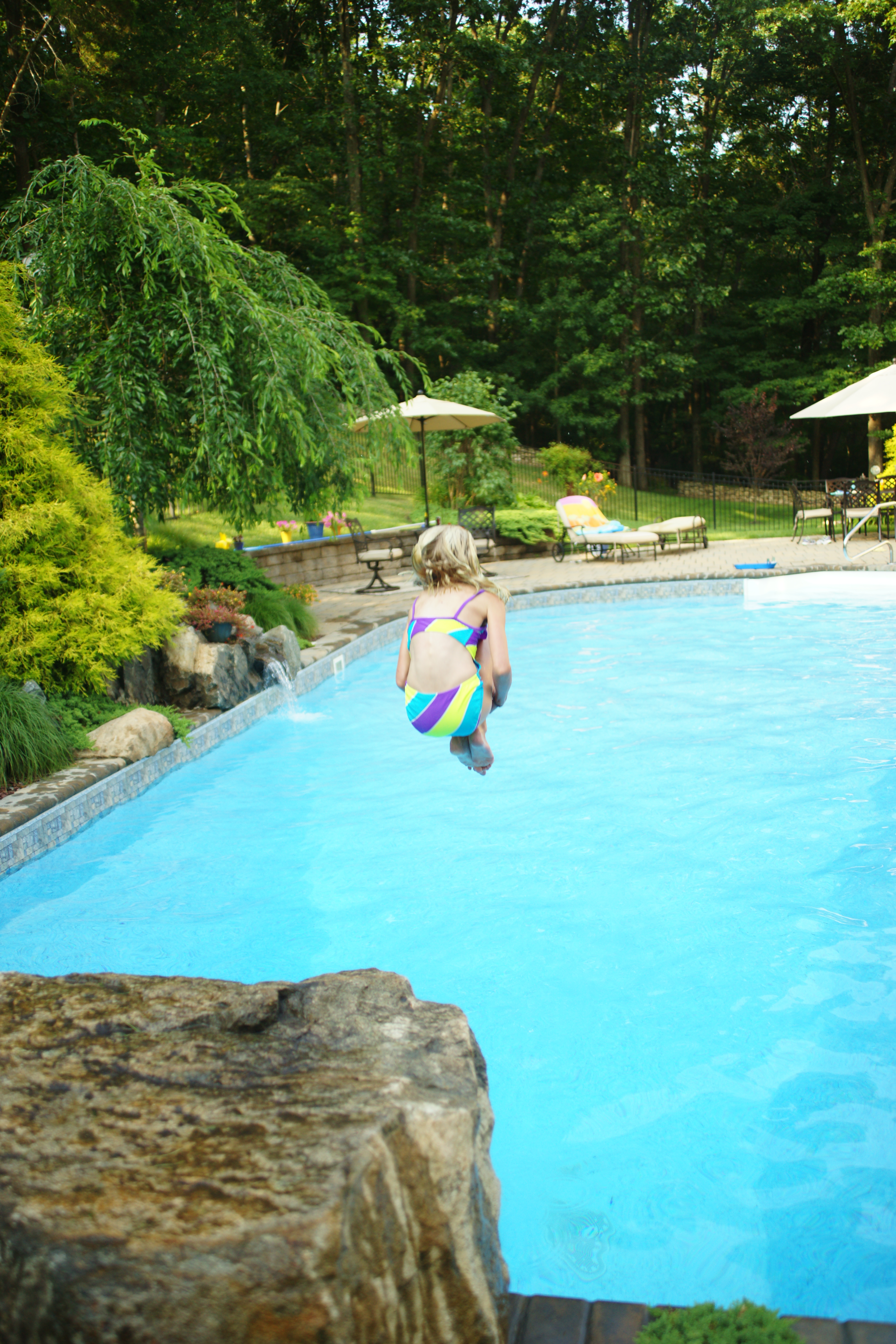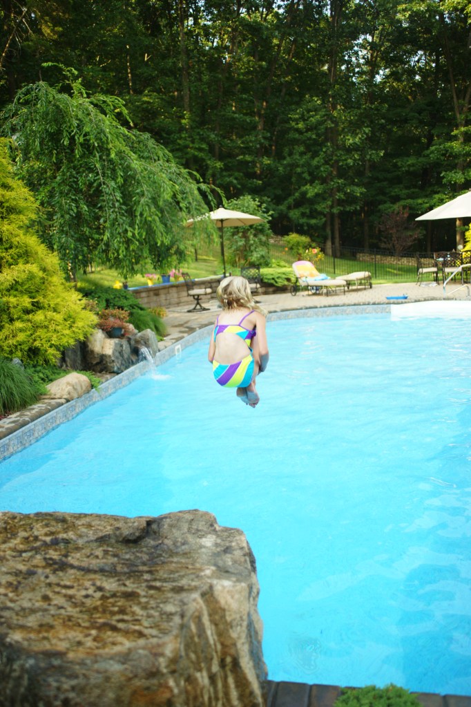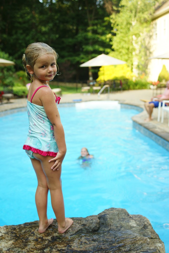 Luckily for me, my parents have a pool. My kids are fish! I am truly amazed at what good swimmers they are because they have spent every summer swimming in that pool. I mean my just-turned-4 year old can do a perfect dive into the deep end and swim the length of the pool back to the shallow end! They impress me to no end because when we are there my “swimming” involves the following: lay in a chair and read a book until I get too hot, get up and take a dip in the pool for 5 minutes careful not to get my hair wet, get out and lay on opposite side and continue to read, repeat every ten minutes. But now I actually have to swim!