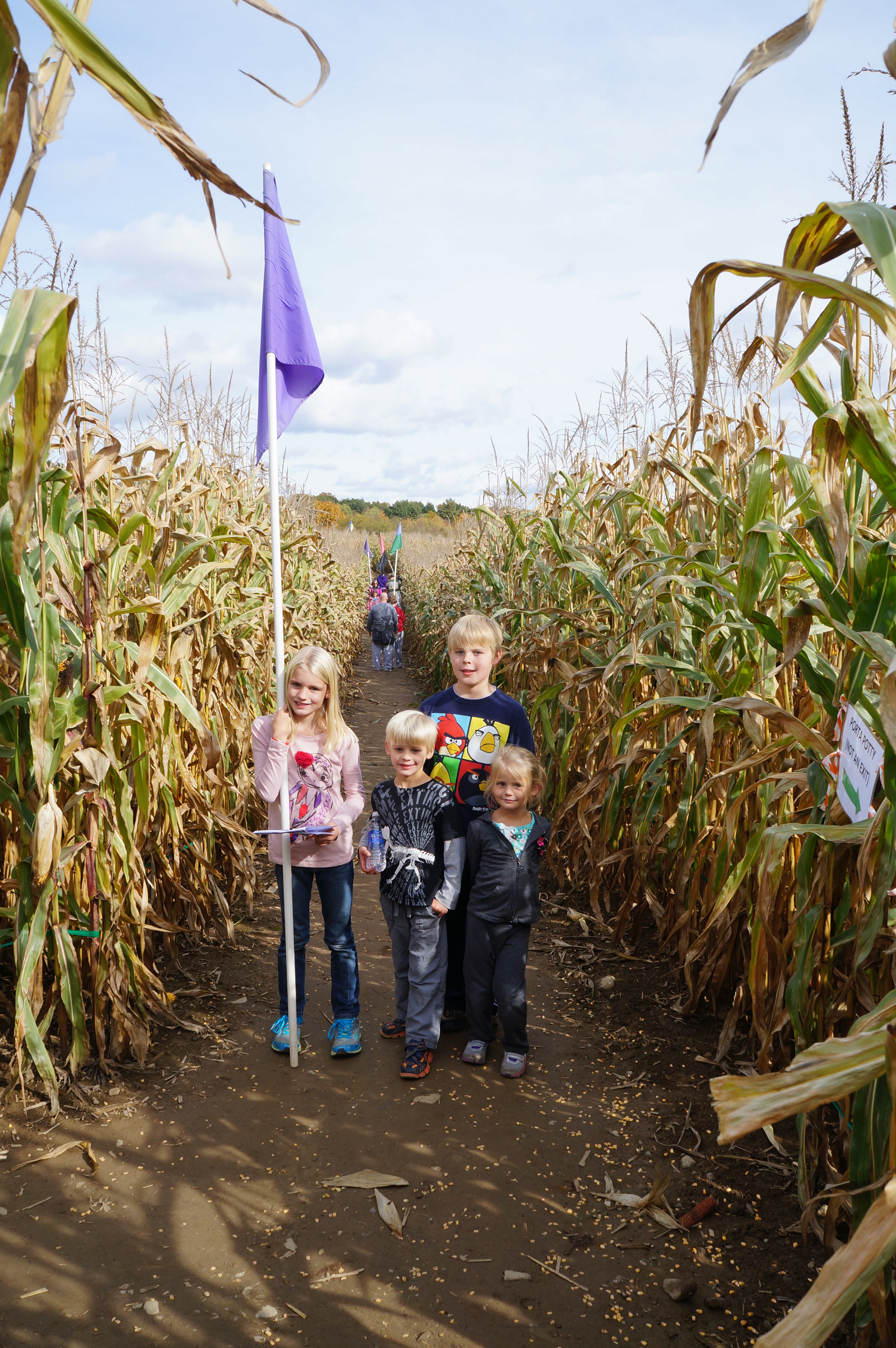 We have hit the same dead end for the 5th time and are contemplating building a corn stalk shelter. We can use the leaves to create a roof and weave the silk into blankets. For dinner we will gnaw on raw corn cobs and lap water from the mud puddle. But instead we try one more turn and there it is! The exit! We have survived the corn maze. A girl at the exit hands us each a piece of candy and we hold it above our heads, cheering as if it were a Olympic gold medal. We pass a family getting ready to enter the maze. “Was it fun?”, they ask. “It sure was!”, we answer with big smiles on our faces.