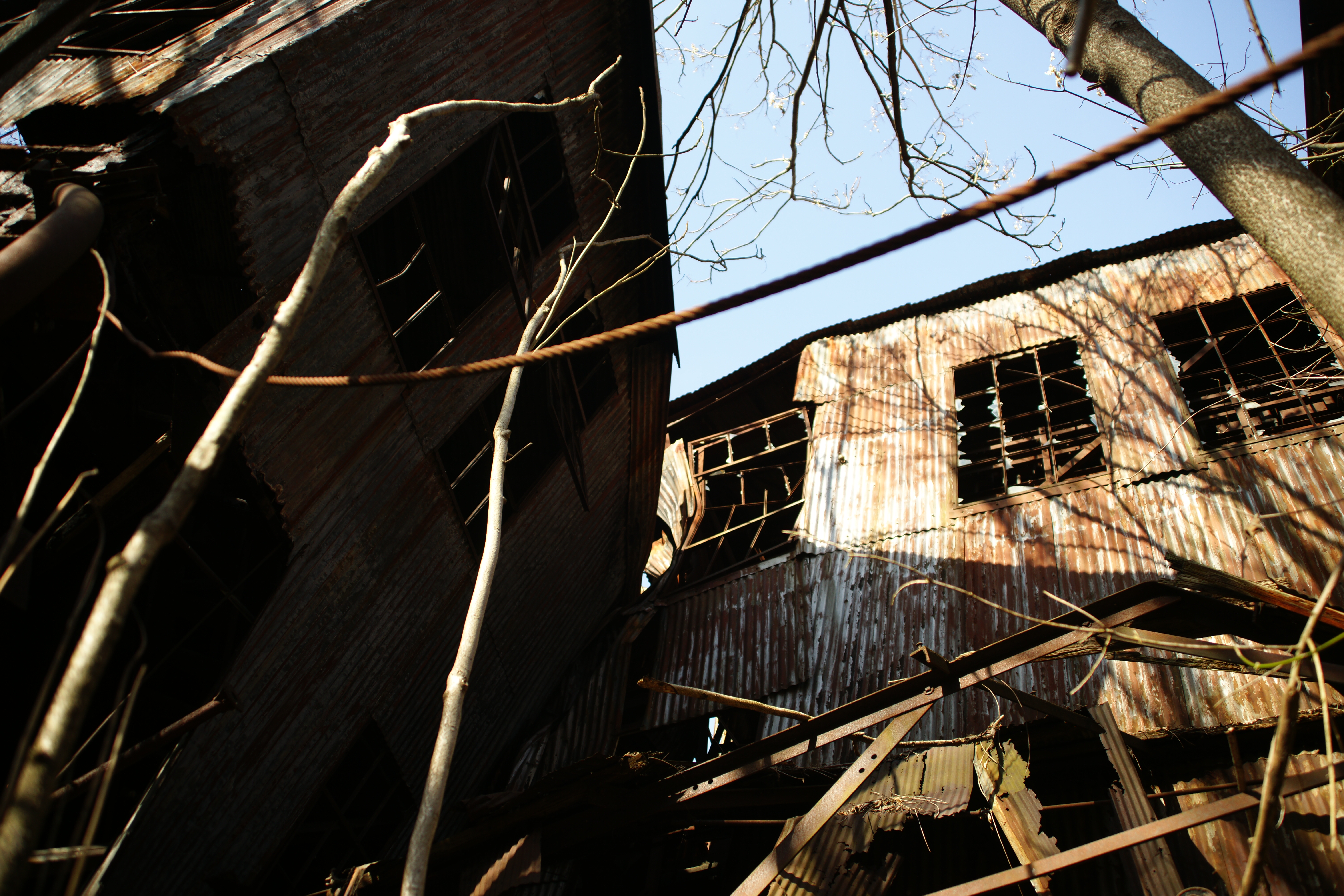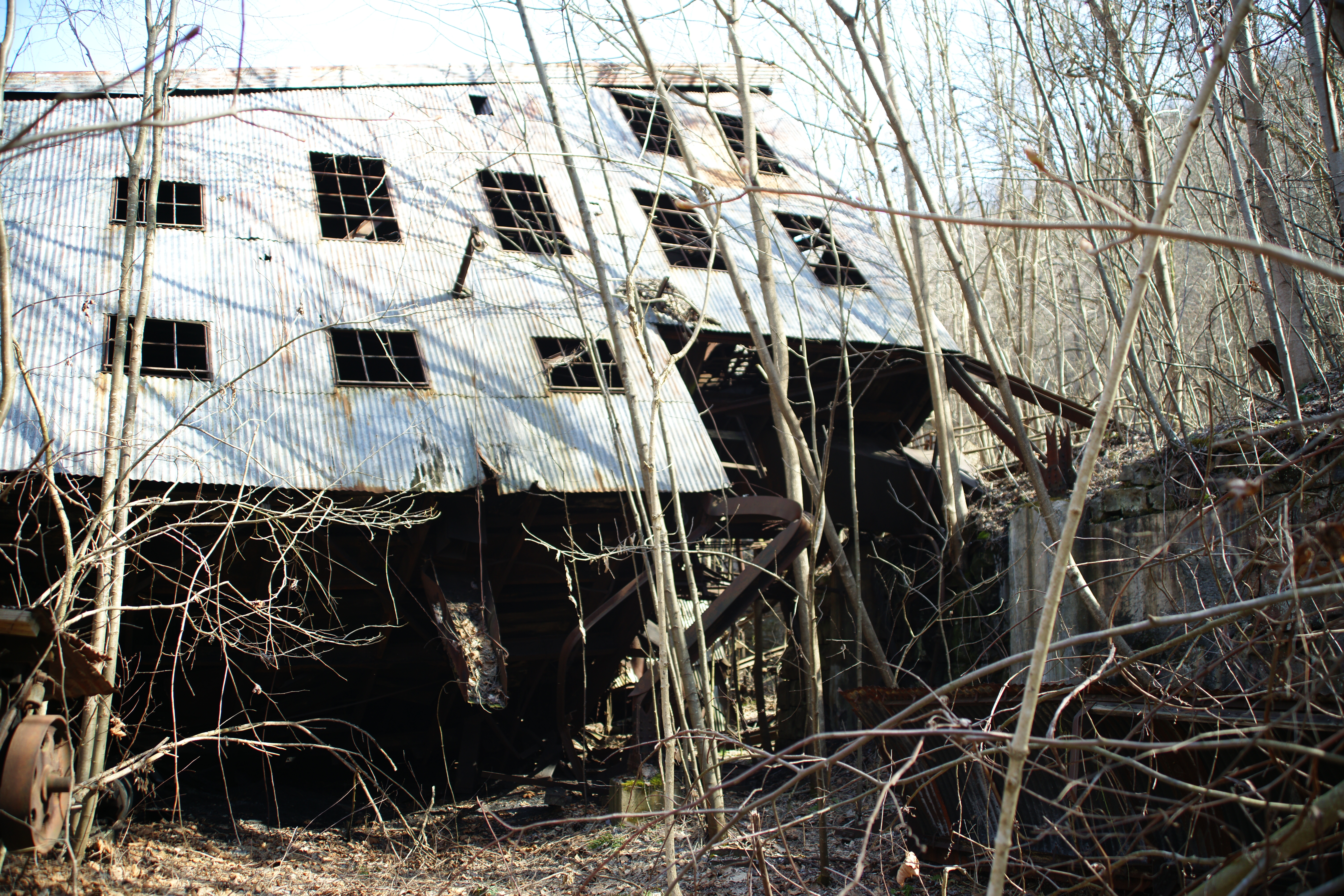 At the bottom were the remains of the coke ovens and the mining town.  Buildings were now huge heaps of twisted metal leaning in precarious angles.  Railroad tracks could be seen through the overgrown vegetation.  The area was so isolated with the steep mountain on one side and the river on the other.  Life must have been very busy when the mine was working, but now the rusted machines, leaning buildings, and massive piles of debris just made the area seem lonely.  Lonely except for the rushing river keeping us company.