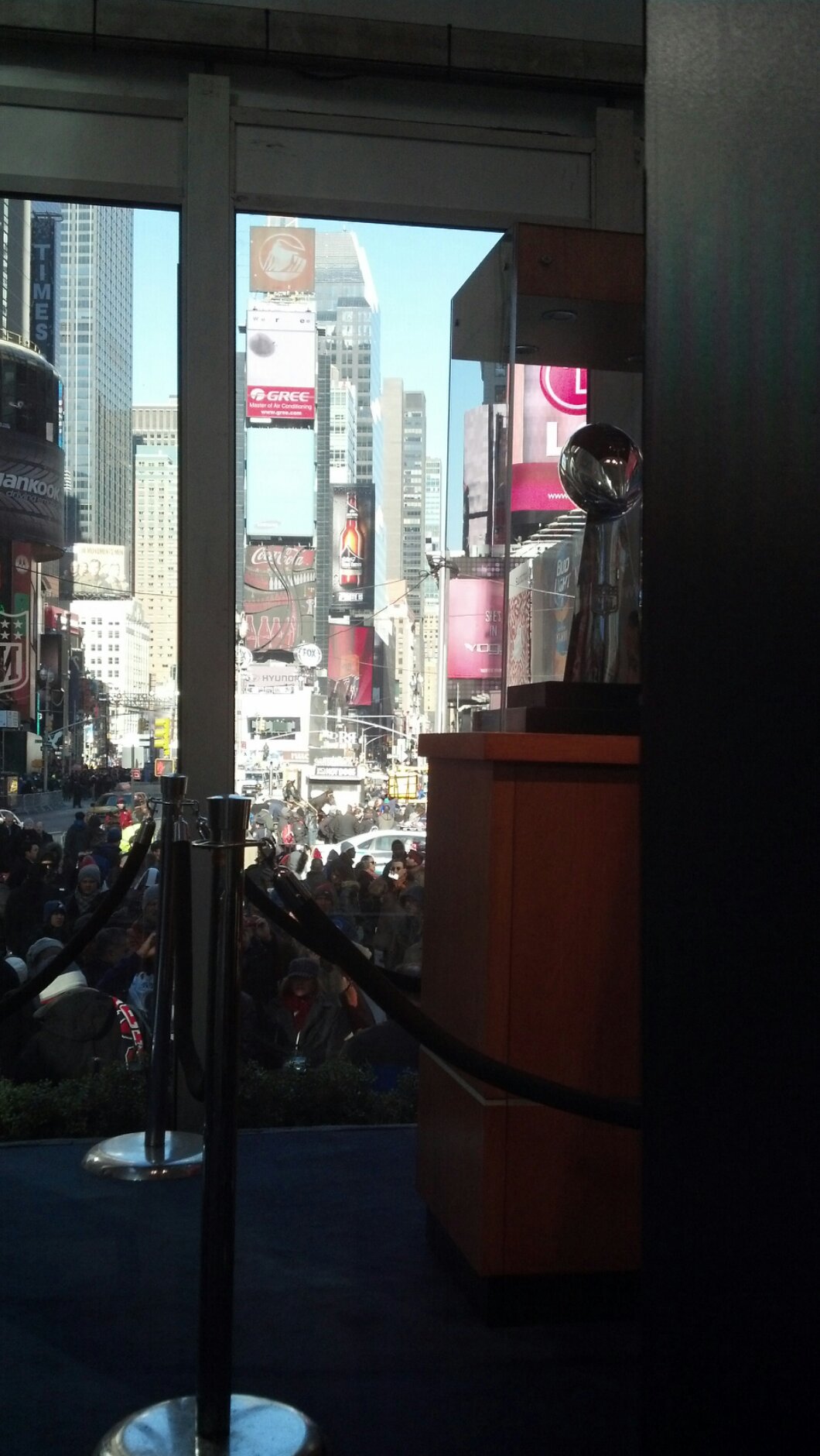 The look and feel of the line was that of an adult Disneyland. The line was long and wove back and forth as it made its way towards the building that held the trophy, but no one seemed to care. Everyone was excited to be there. It was a very happy vibe! (Except for the grumpy New Yorkers walking by complaining of all the extra people and traffic).