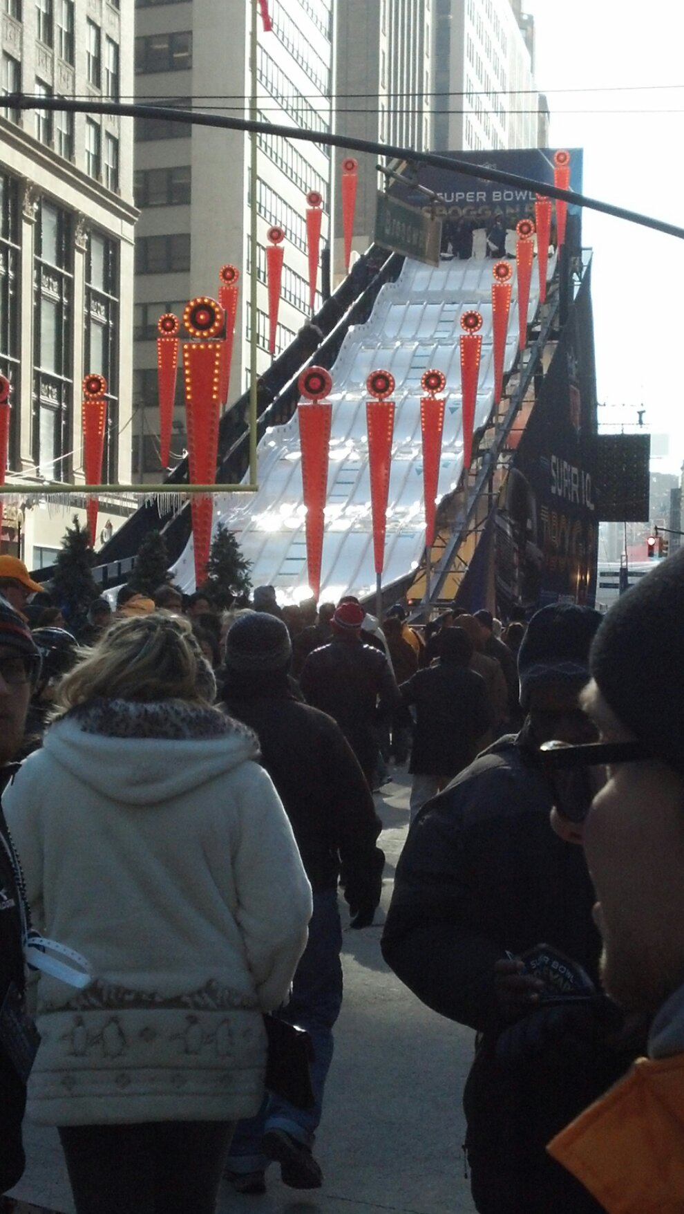 Earlier this week my friend and I went to check out Super Bowl Boulevard in NYC. We figured it was a once in a lifetime experience.