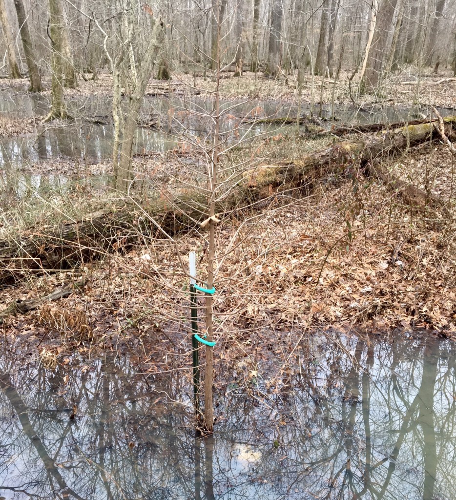 On the way back we came upon something that we hadn’t noticed on the way out. A new cypress tree had been planted next to the boardwalk. It was small, nothing more than a twig really, but it was there. Despite the isolation and loneliness and tragic story behind the park, this gave hope. A tiny bit of hope. We stood in silence listening to that lone tree frog and last season’s leaves rattling in the breeze and thought of how maybe one day, way in the future, this park would once again be filled with people marveling at a great big cypress tree.