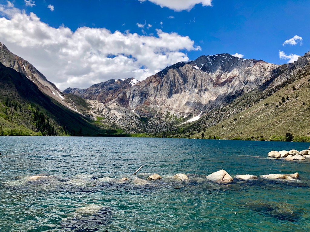 Contrast that to out west where the destination is seen; looming majestically in the distance. We hike on a trail along a lake flanked by tall mountains whose rocky faces drop straight into its crystal clear waters. Nothing is hidden here, just beauty to watch on the entire trail. Two vastly different hikes, yet two wonderful pay-offs.