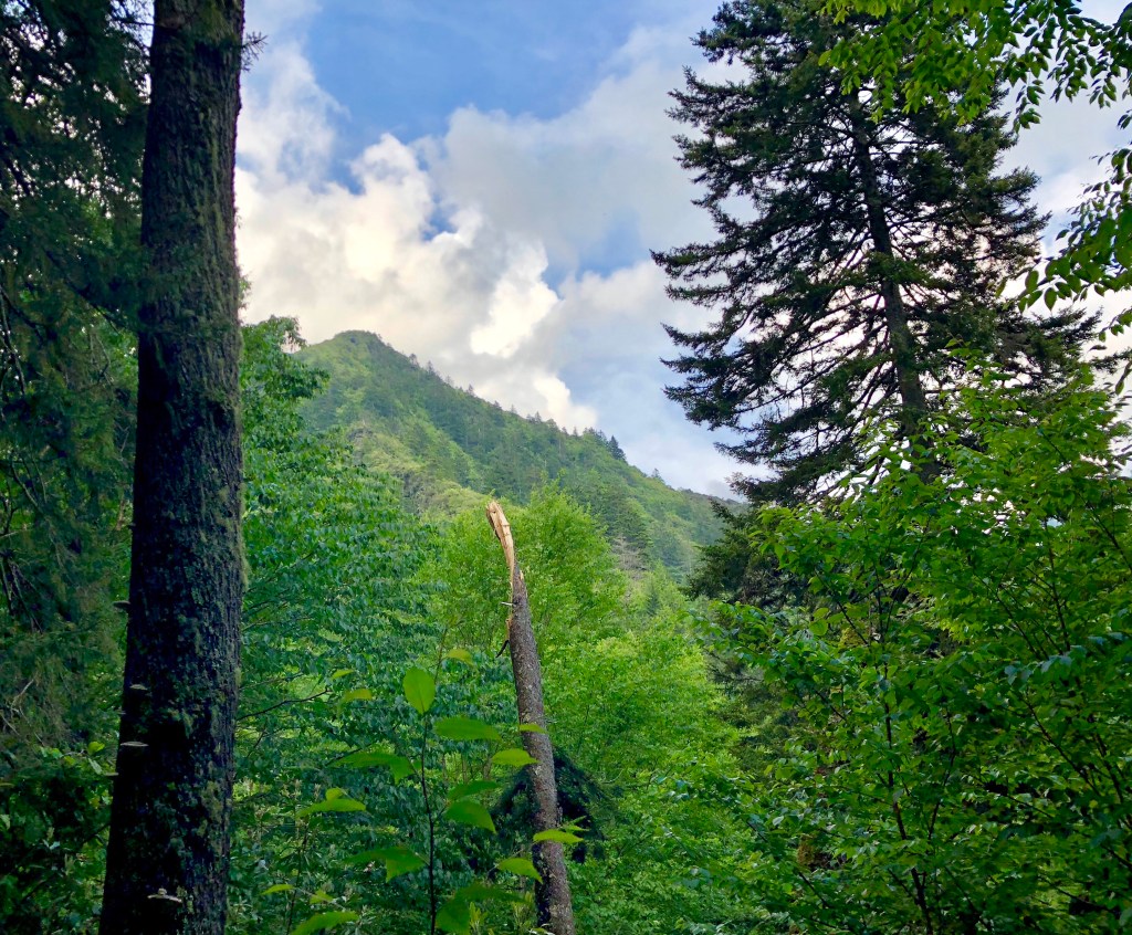 On my hike in the Smokies, I stop and stand in a section of dense forest. There’s a sense of mystery here. Of things hidden just around the bend that I cannot and will never see. The dense vegetation holds secrets tight. The ground beneath me is spongy- I can feel the history beneath my feet. Here, the mountains are a place to get lost in and slowly fade away. There’s a sense of timelessness here. Standing in the forest, modern day fades away and I feel the past all around me, unchanged for generations.