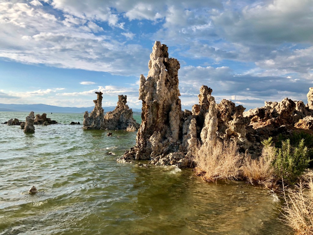But one of the most interesting and unique results of the dramatic water level drop was the exposure of the tufa towers. These towers are calcium-carbonate spires and knobs that formed where freshwater springs bubbled up and interacted with the alkaline lake water. They were hidden deep underwater until the lake began losing water. Then they slowly became exposed. Majestic limestone, or tufa, pillars that now rise high from the waters, keeping watch over the lake. It’s these towers that are bringing people back to Mono Lake.