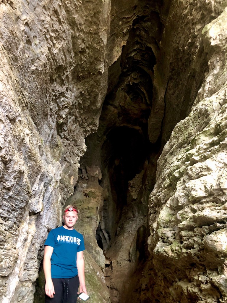 Earlier that day my oldest son and I met in the kitchen, each looking for something eat. We realized that we were both home for the rest of the day; me with a day off from work and he had finished a final at school and was home early. The December day, which had started off with bright blue skies, was now gray but fairly warm. We decided then and there that it was time for a mini adventure, so we did a quick wardrobe change and 10 minutes later we were off in search of a couple caves we had heard about.
