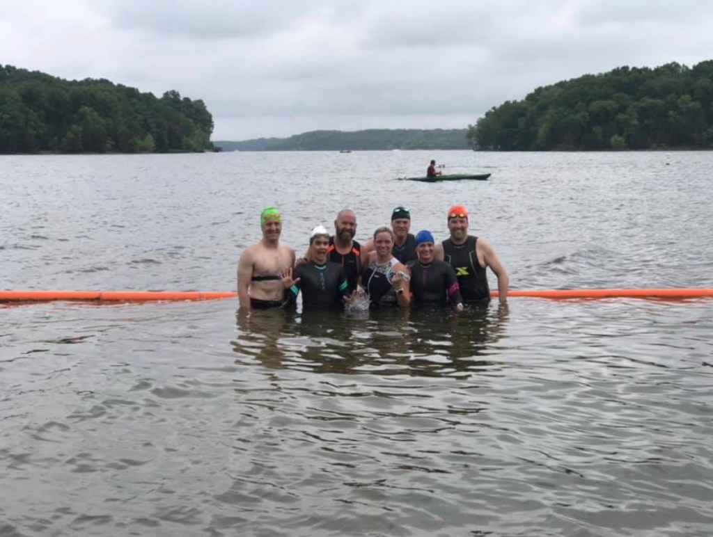 It was really bad! The water was so choppy that most of my swim, once I was away from the shore, was on my back. My main thought was, “I’m going to drown in this stupid lake”. I think everyone had similar thoughts. Maybe not the drowning, but about just how difficult that was and how would we ever swim 1.2 miles in the race. We left the lake feeling frustrated and nervous, sharing our stories with each other.