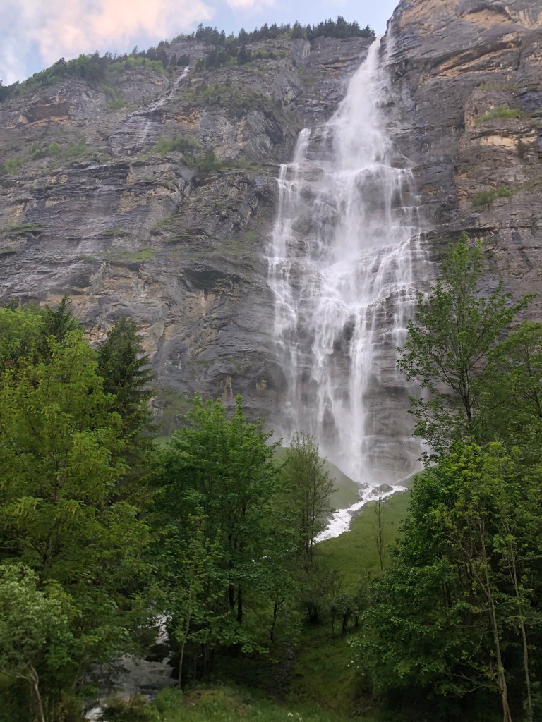 We drove to the tiny town of Lauterbrunnen and parked in a public parking lot. We didn’t have to go very far to see our first waterfall. In fact, we didn’t have to go anywhere. Staubbach Falls, all 974 feet of it, was right there. If you’ve ever seen any pictures of the town of Lauterbrunnen, this is the waterfall that you see. It’s basically in the town. Nothing like an immediate payoff to start our hike!