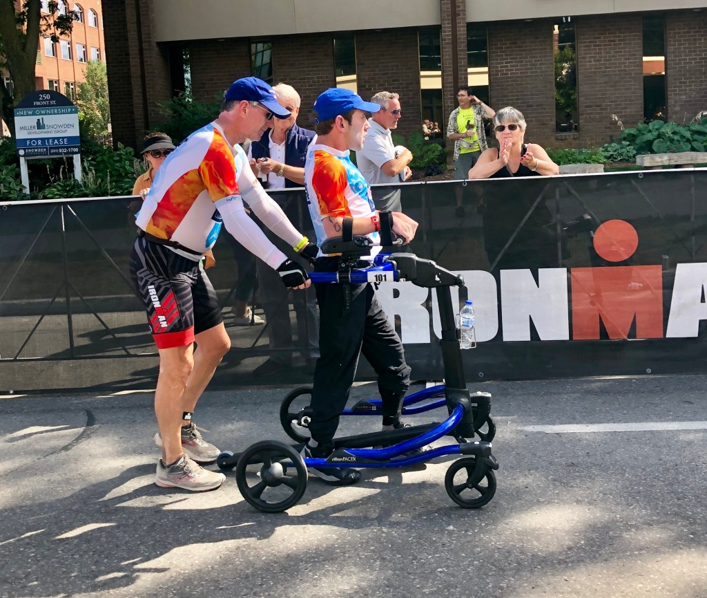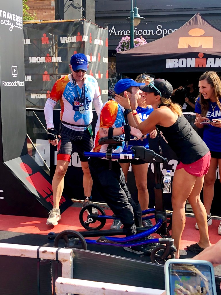 Johnny has begun to finish each Ironman by walking across the finish line. To officially complete a 70.3 Ironman you need to finish in 8:30 hours. With 10 minutes to spare the Agars reached the last tenth of a mile at Traverse City. They quickly got Johnny up and into his walker and, with every spectator cheering like crazy, Johnny crossed the finish line to complete the race! There was truly not a dry eye to be found.