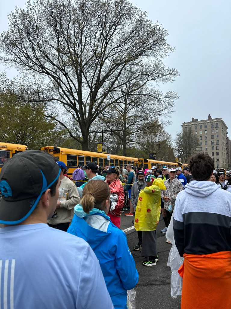 The Boston Marathon is a well oiled machine! I could not believe how many people were waiting to get on buses, but they loaded a set and immediately another set of buses appeared. Alicia and I boarded and were off. The bus we were on happened to have a lot of people who were part of wave 4 on it and were doing the marathon through fundraising. I loved that because the atmosphere was just pure excitement. These people had worked hard at both raising money for their nonprofit and training and could not wait to run the marathon. It was a first for everyone around us and we all shared stories of what we thought it would be like.