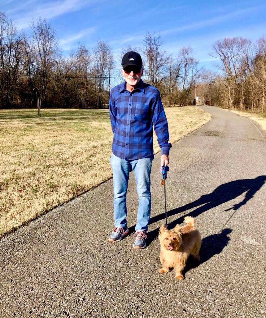A few years ago my parents moved to Tennessee, not far from where we live. My dad and I would often text each other to see if the other wanted to walk after work. Dogs replaced strollers and we circled the neighborhood and town trails discussing life, jobs, my now teenage kids, and of course our newest babies- the dogs. We walked in all kinds of weather, from bitterly cold windy days to the hot and humid summer evenings where a stop at the creek halfway through was required to cool off the dogs.