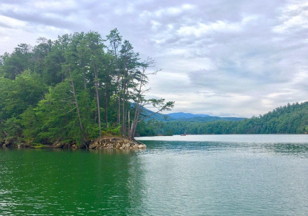 Fontana Lake is beautiful. Mountains drop straight down to its’ tourquoise-green waters while fish jump and bald eagles fly overhead. It twists and turns through 30 miles and is so remote that you rarely see another boat. But, it’s what’s underneath the lake that is the most interesting.